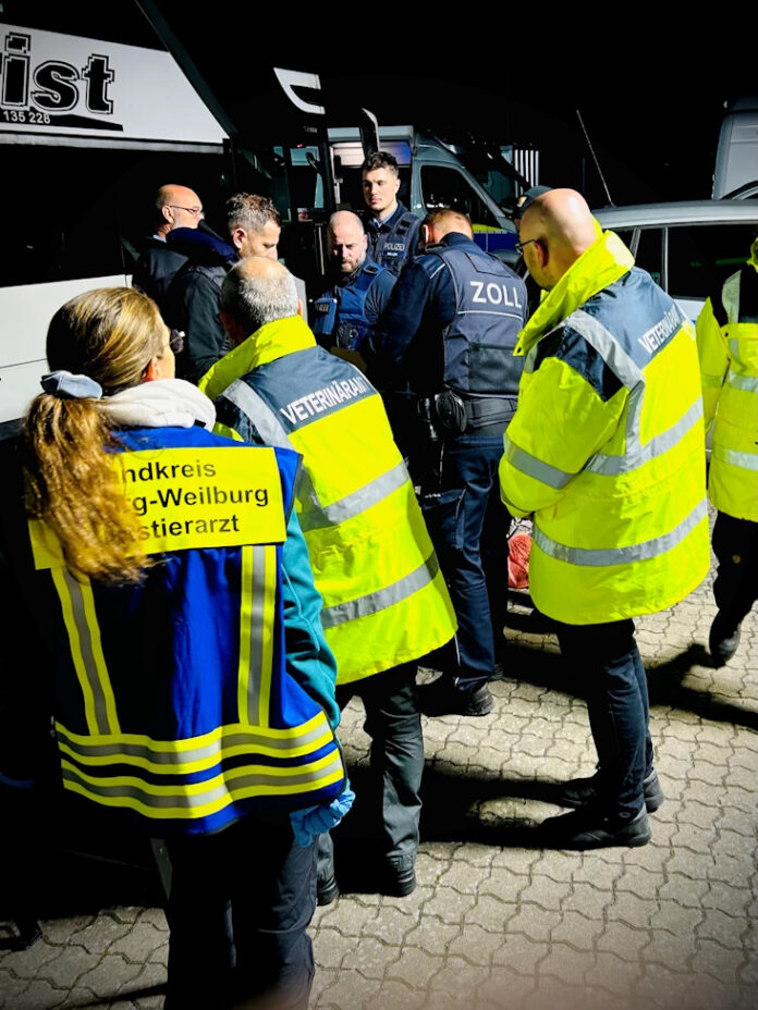 De actie werd uitgevoerd door de controle-eenheid verkeerswegen van het Hauptzollamt Gießen in samenwerking met verkeersspecialisten van de politie Westhessen. Ook het Veterinäramt Limburg-Weilburg sloot zich aan bij de controle. De touringcars waren onderweg naar het Ruhrgebied, de Benelux of Groot-Brittannië.
