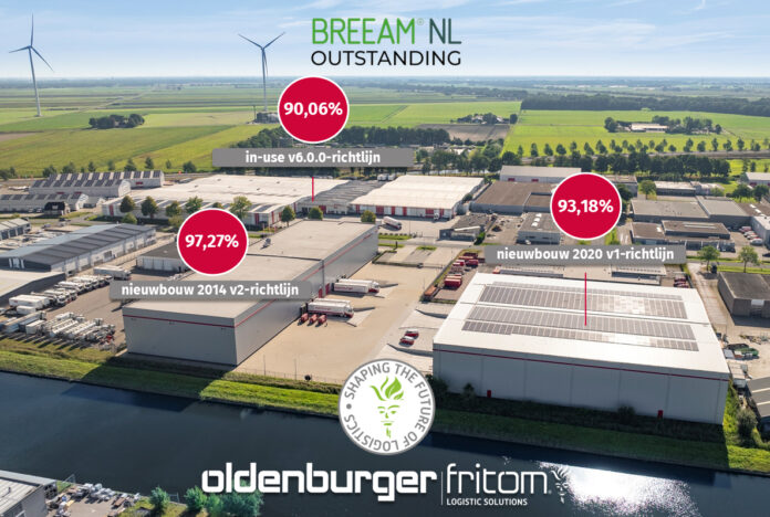 VEENDAM – Onlangs zijn de definitieve BREEAM Outstanding scores van meerdere panden van Oldenburger|Fritom in Veendam bekendgemaakt. Het nieuwe distributiecentrum van de innovatieve logistieke dienstverlener heeft een Nieuwbouw-score van 93,18 procent gekregen. Oldenburger|Fritoms bestaande warehouse en hoofdkantoor behaalden samen een In-Use-score van 90,06 procent. Dit is wereldwijd ongekend hoog.