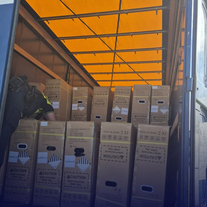 RIJNSATERWOUDE – De verkeerspolitie Den Haag heeft in Rijnsaterwoude een vrachtwagen staande gehouden die geladen was met 210 fatbikes afkomstig uit Groot-Brittannië. Bij de controle bleek dat de lading mogelijk niet voldeed aan de geldende eisen.