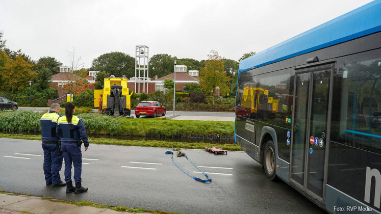 Een bergingsbedrijf is ter plaatse om het voertuig los te trekken. Eerst wordt geprobeerd de bus vanaf de overkant van de sloot los te krijgen. Mocht dat niet lukken, dan zal een telekraan worden ingezet om de bus omhoog te takelen.