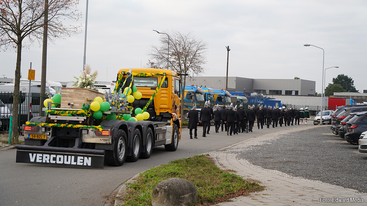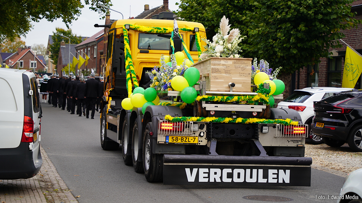Zijn laatste rit door de stad werd begeleid door zijn carnavalsvereniging, vrachtwagens en tractoren.