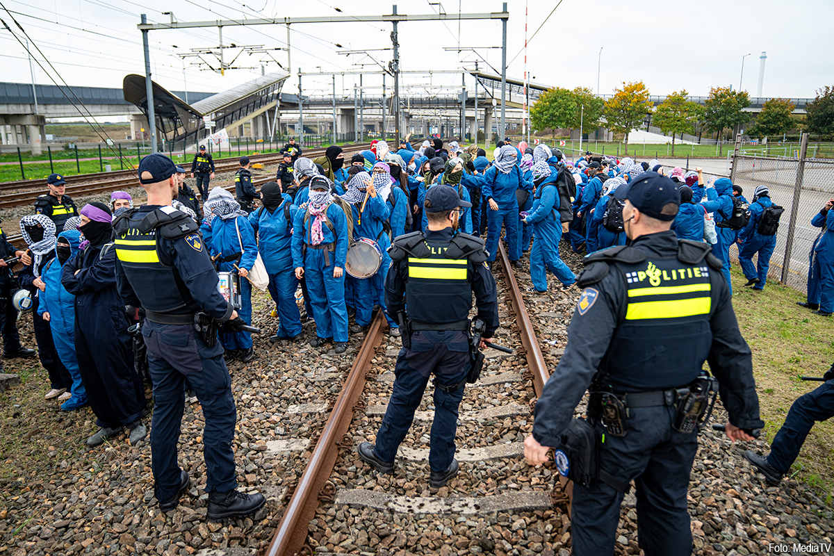 Zo ook bij de Vondelingenweg waar demonstranten het spoor zijn opgegaan.