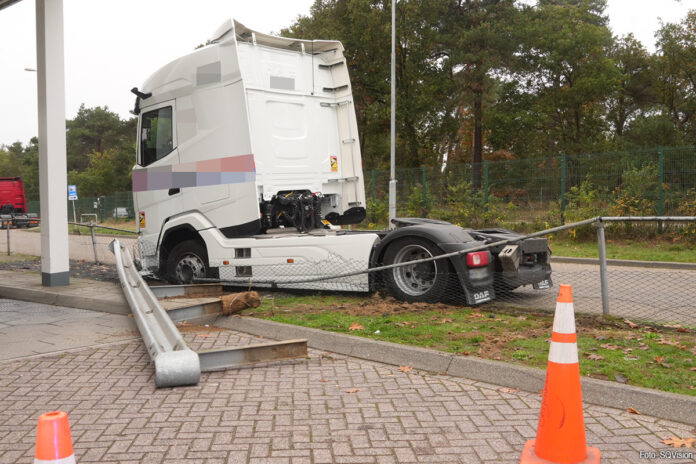 LIEROP – Bij een tankstation langs de A67 bij Lierop is maandag een vrachtwagen van de weg geraakt bij het oprijden naar de parkeerplaats.