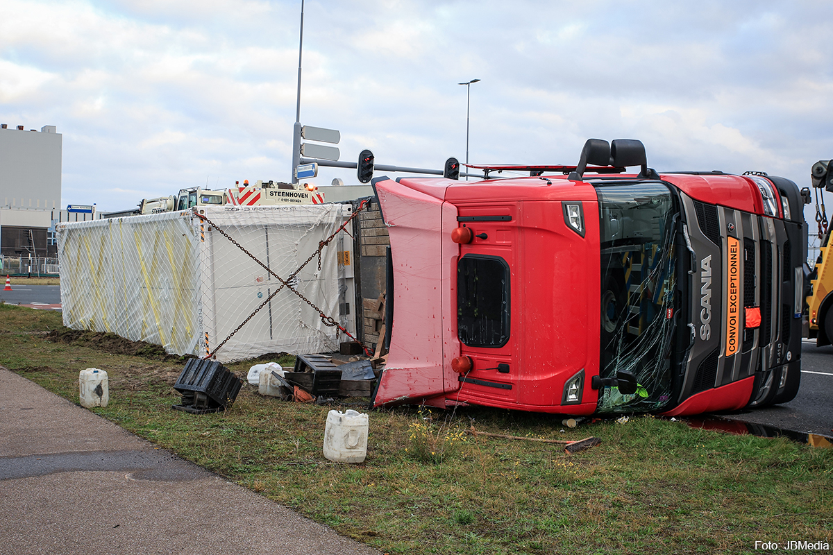ROTTERDAM – Op de Europaweg in de Rotterdamse Maasvlakte is vrijdagmiddag rond 16:30 uur een vrachtwagen gekanteld. De trekker-trailercombinatie, onderdeel van een konvooi van negen vrachtwagens met eenzelfde gevaarlijke lading, verloor daarbij een onbekende hoeveelheid diesel. Er zijn geen gewonden gevallen.