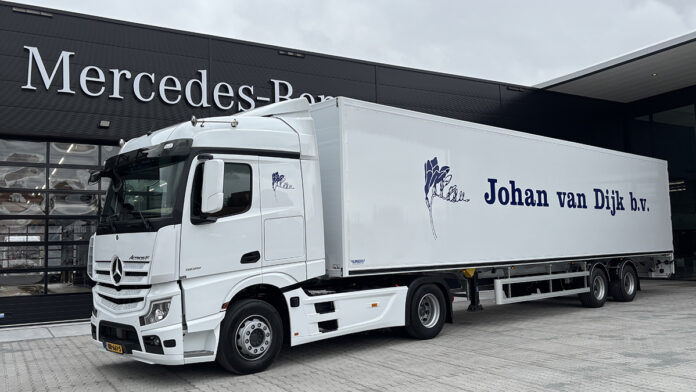 AALSMEER – Transportbedrijf Johan van Dijk uit Aalsmeer heeft onlangs de eerste twee van vijf nieuwe Mercedes-Benz Actros F trekkers en twee geïsoleerde trailers van Burgers Carrosserie in gebruik genomen. De voertuigen vormen een uitbreiding van het moderne wagenpark waarmee het familiebedrijf dagelijks zorgt voor het interne transport tussen de drie grote locaties van Royal FloraHolland in Aalsmeer, Rijnsburg en Naaldwijk.