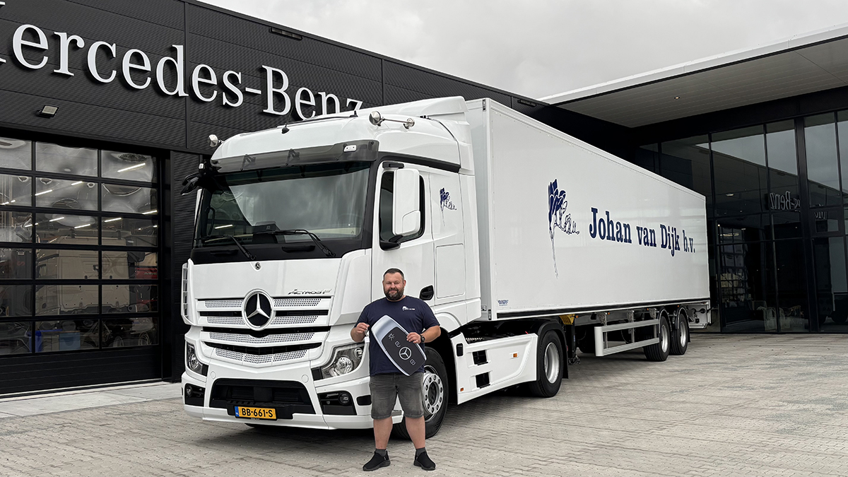 De levering van de nieuwe Mercedes Actros F trekkers is verzorgd door Stefan Hartkamp van Gomes Aalsmeer. Met deze uitbreiding speelt Johan van Dijk in op de groei van de activiteiten en de behoefte aan efficiënt en betrouwbaar transport tussen de veilinglocaties.