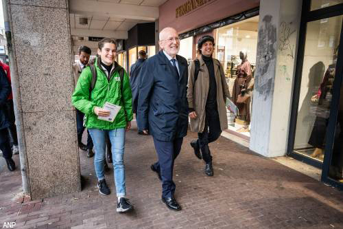 Timmermans liep zelf ook een stuk mee met de ongeveer dertig vrijwilligers tijdens het flyeren in de wijk De Baarsjes. Hij sprak een aantal mensen aan, onder meer bij een viszaak. Het flyeren verliep zonder problemen.