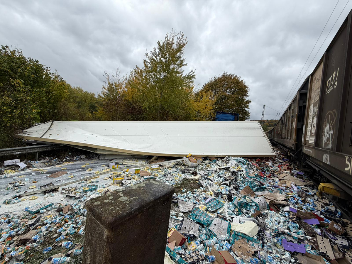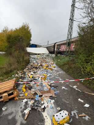 De 42-jarige chauffeur van de vrachtwagencombinatie uit de regio Kitzingen vervoerde circa 12 ton melk- en kaasproducten. Hij reed het spoor over, maar negeerde vermoedelijk het verkeersbord dat voertuigen daar verbiedt. Kort na de spoorwegovergang kwam de truck klem te staan in een scherpe bocht.