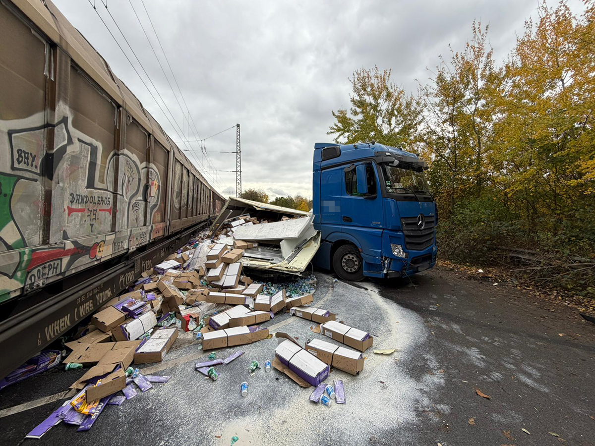 De 42-jarige chauffeur van de vrachtwagencombinatie uit de regio Kitzingen vervoerde circa 12 ton melk- en kaasproducten. Hij reed het spoor over, maar negeerde vermoedelijk het verkeersbord dat voertuigen daar verbiedt. Kort na de spoorwegovergang kwam de truck klem te staan in een scherpe bocht.