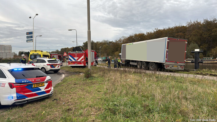 De vrachtwagenchauffeur is eerst behandeld door het ambulancepersoneel en vervolgens naar het ziekenhuis gebracht.