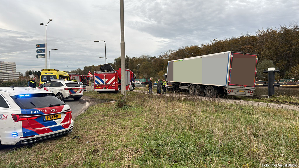 De vrachtwagenchauffeur kwam van de Schipholdijk toen deze van de weg raakte.