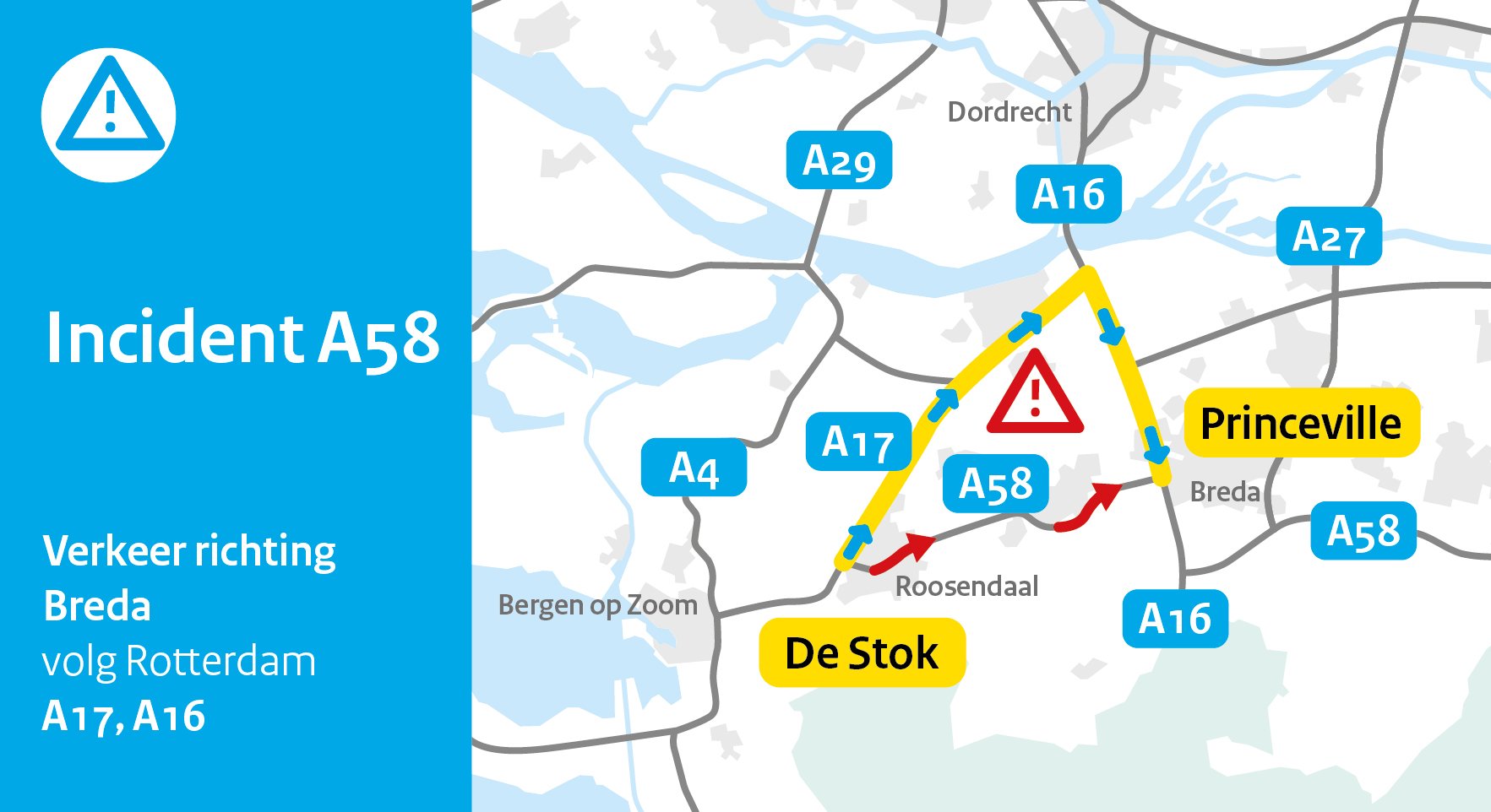 ROOSENDAAL – De A58 is donderdagochtend afgesloten tussen knooppunt De Stok en Roosendaal na een ongeval waarbij een vrachtwagen is gekanteld. Dat meldt Rijkswaterstaat op X (voorheen Twitter).