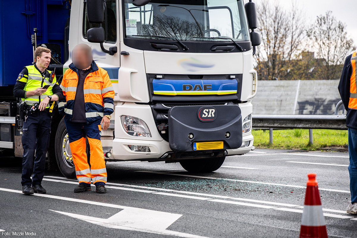 CRUQUIUS – Op de N201 ter hoogte van de kruising met de Drie Merenweg bij Cruquius is dinsdagmiddag een vrachtwagen achterop een leswagen gebotst.