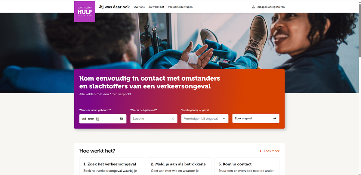 Gebruikers kunnen een ongeval terugvinden of zelf aanmelden. Alleen wanneer beide partijen dat willen, kan er via een beveiligde chat contact worden gelegd. Persoonsgegevens worden niet gedeeld; alle communicatie blijft binnen de beschermde omgeving van het platform. Slachtofferhulp Nederland beheert de omgeving en ziet toe op veiligheid en zorgvuldigheid.