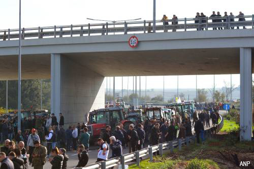 Honderden boeren gingen de straat op en blokkeerden wegen met hun tractoren om te protesteren tegen de regering over een geschat uitblijven van 600 miljoen euro aan EU-steun en andere betalingen.