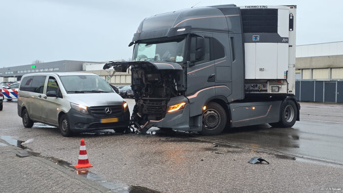 Vier gewonden bij botsing tussen bestelbus en vrachtwagen op terrein bloemenveiling De Kwakel