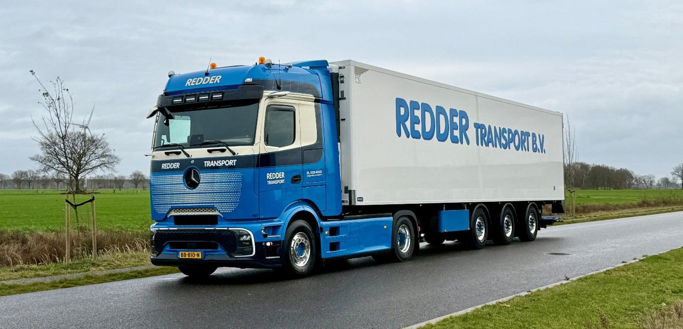 STAPHORST – Redder Transport heeft zijn eerste volledig elektrische Mercedes-Benz Actros e600 in gebruik genomen. Het gaat om de eerste truck uit een serie van vier elektrische voertuigen waarmee het familiebedrijf zijn wagenpark verder verduurzaamt.