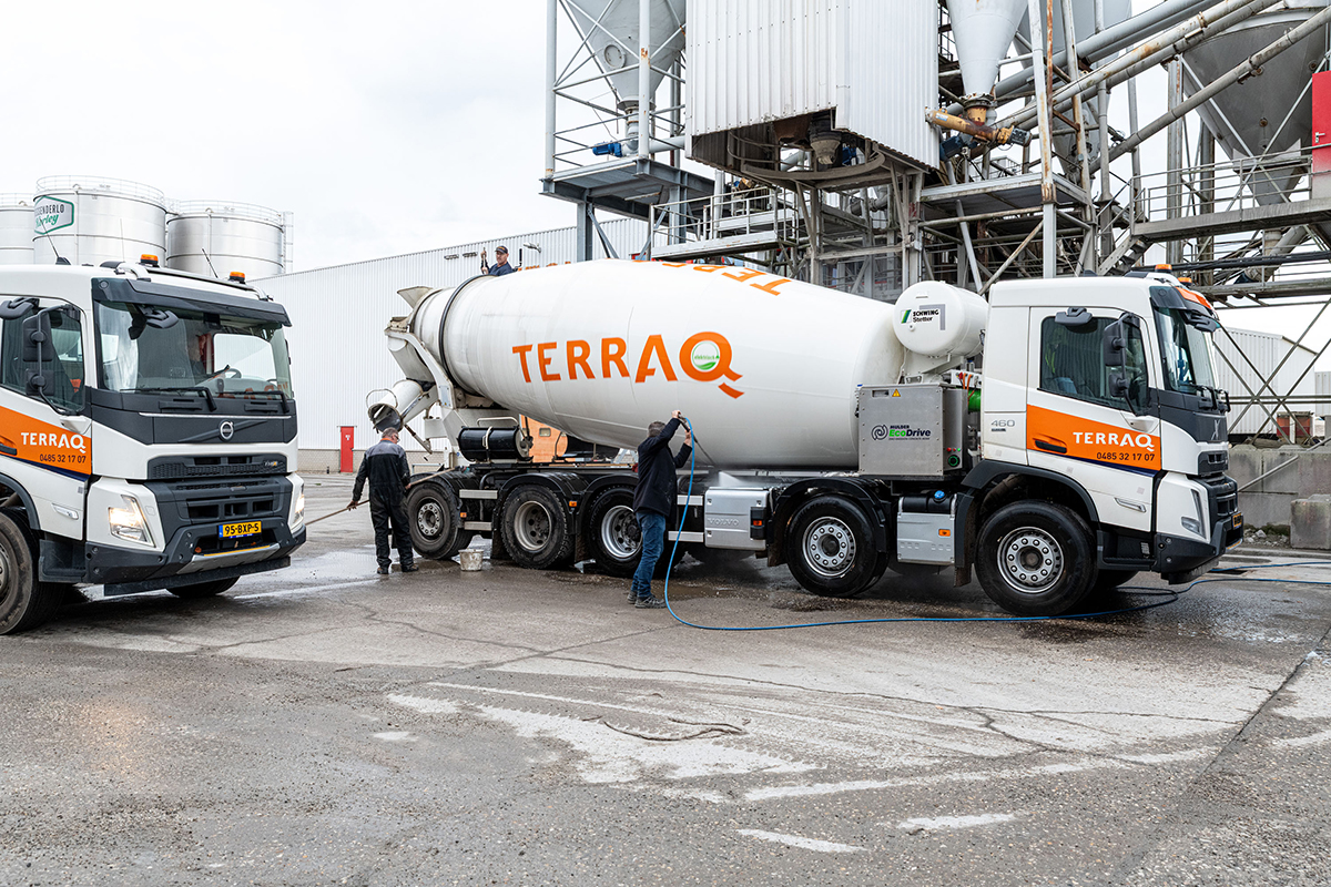 Terraq heeft nu negen Volvo-trucks in de vloot: drie betonmixers, twee trekker-opleggers en meerdere Volvo FH-motorwagens voor het transport van MegaMix-silo’s. Janssen: “Nebim Venlo is al jaren een belangrijke partner voor ons bedrijf. Naast de specifieke voordelen die Volvo-trucks bieden, kiezen we ook voor dit merk vanwege de service van Nebim. Een deel van het onderhoud doen we zelf, maar voor de grotere klussen, keuringen en storingen die snel verholpen moeten worden kunnen we altijd op Nebim rekenen.”