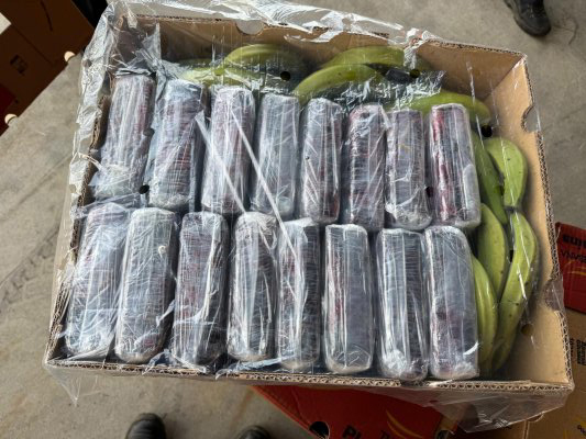 De drugs werden aangetroffen in een container die was geladen met bananen en stond opgesteld aan kaai 730.