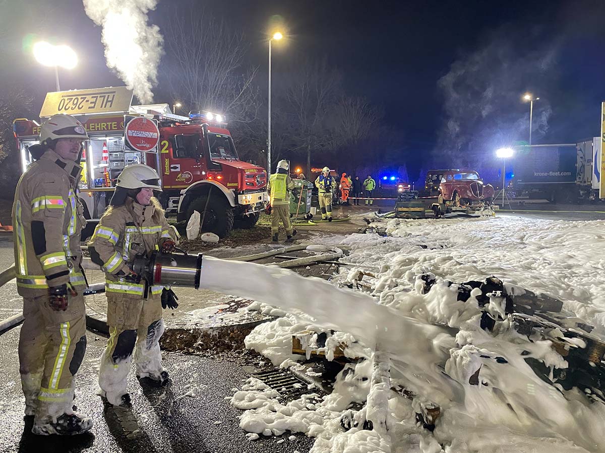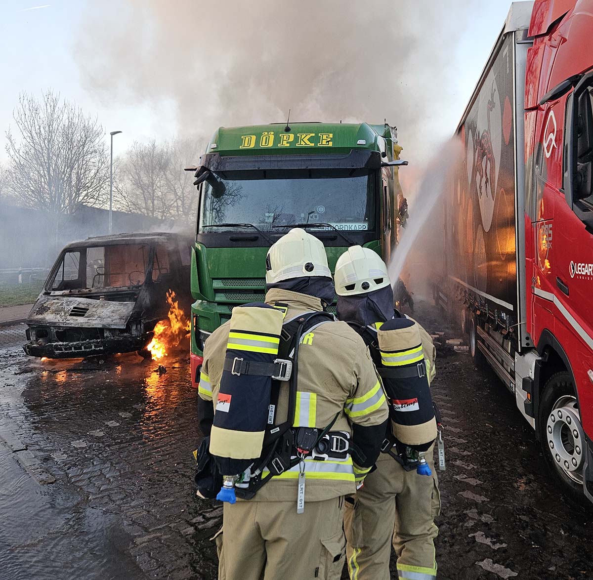 Rond 15.23 uur werd de Feuerwehr Lehrte gealarmeerd vanwege een brand in het motorcompartiment van een bestelbus. Al tijdens de aanrijroute was een grote rookkolom zichtbaar. Bij aankomst stond het voertuig al volledig in brand en was het vuur inmiddels overgeslagen naar een ernaast geparkeerde vrachtwagen.