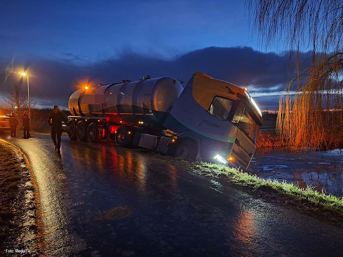 HomeTRANSPORTNIEUWSOngevallenVrachtwagen van de weg geraakt door gladheid in Alphen aan den Rijn