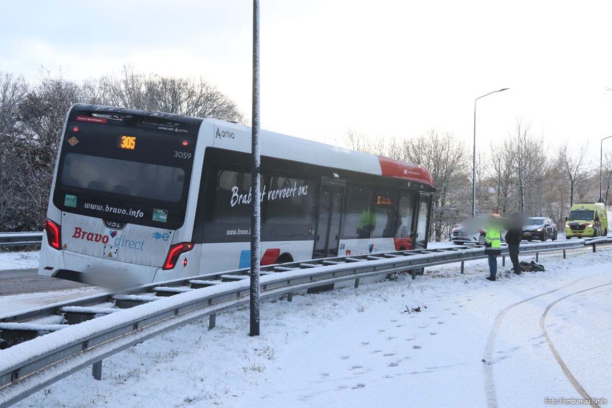 Bus tegen vangrail Uden