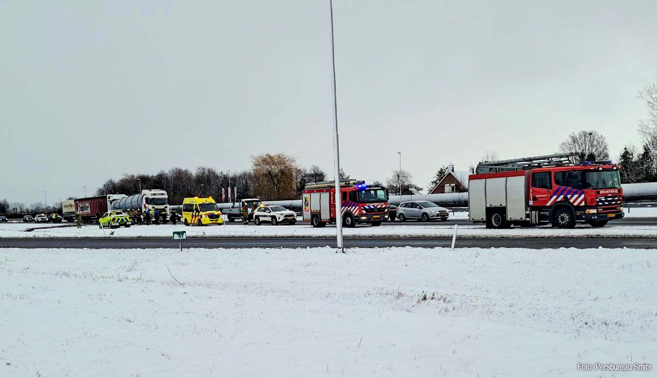 Naast de twee vrachtwagens is ook een personenauto door een berger getakeld. Of deze personenauto daadwerkelijk bij de aanrijding betrokken is geweest, is nog niet duidelijk.