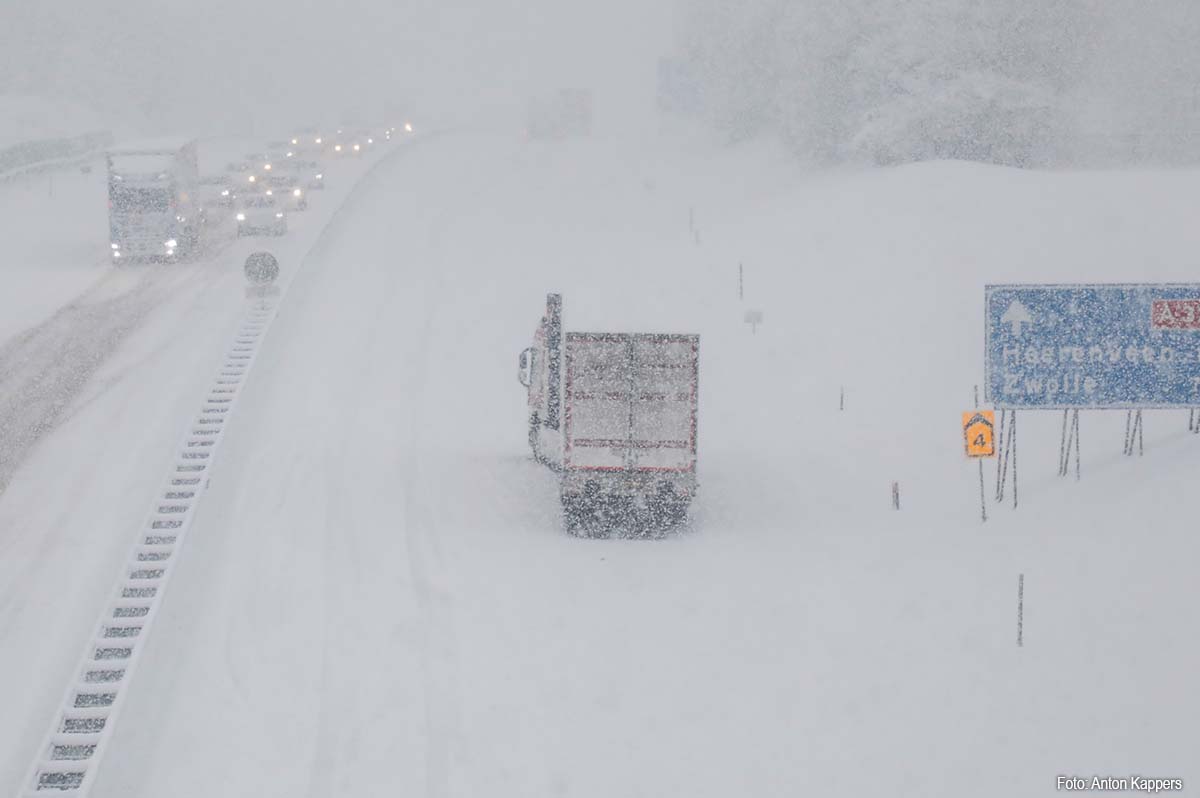 Ook op de A32 bij Heerenveen zijn er problemen. Daar komen met name vrachtwagens het aquaduct niet meer op.