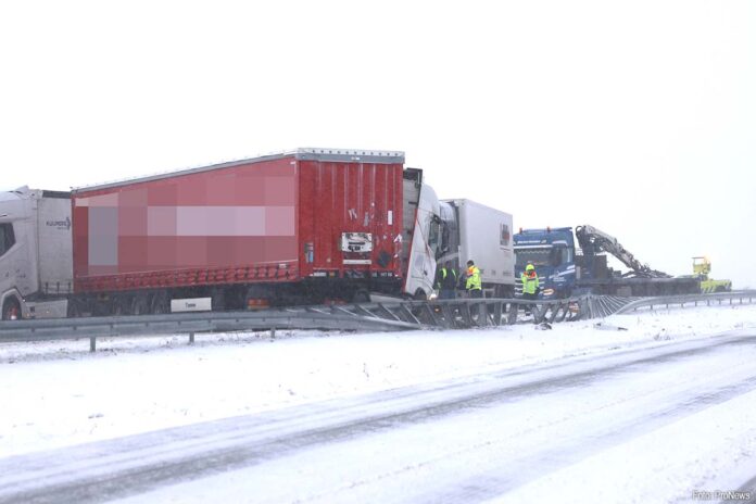 SWIFTERBANT – Op de A6 bij Swifterbant is woensdagochtend een vrachtwagen geschaard door de gladheid.