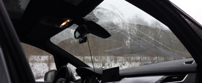 IJsblok beschadigt auto, vrachtwagen rijdt door