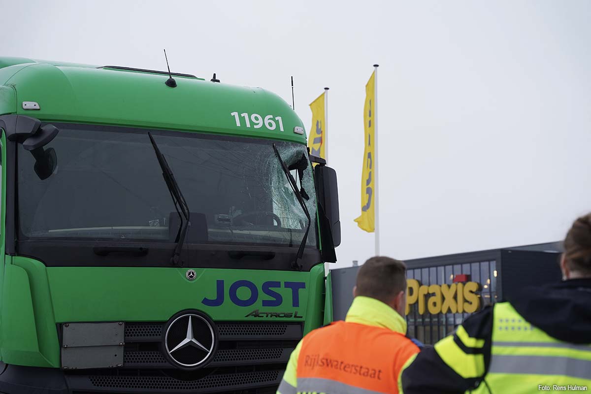 Vrachtwagenchauffeur gewond nadat ijsplaat van andere vrachtwagen door voorruit slaat op N50 [+foto’s]