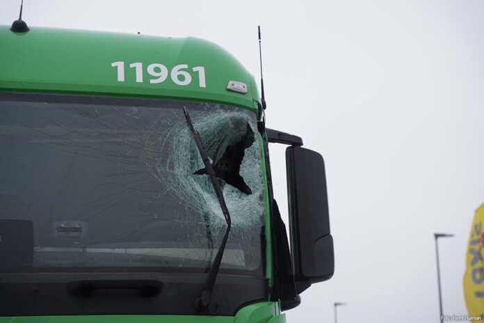 KAMPEN – Op de N50 ter hoogte van Kampen heeft vrijdagmiddag rond 13.27 uur een ernstig incident plaatsgevonden met twee vrachtwagens. Van een passerende vrachtwagen brak een ijsplaat los, die vervolgens door de voorruit van een achteropkomende vrachtwagen sloeg.