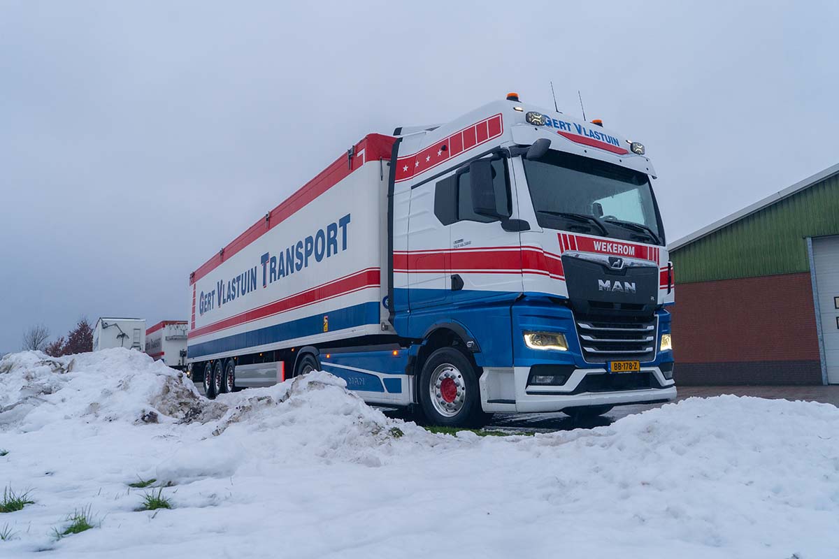 De trucks zijn uitgevoerd in de huisstijl van Gert Vlastuin Transport en voorzien van extra verstralers op de wit gespoten zonneklep en aluminium wielen. Later dit jaar volgt een verdere uitbreiding van het wagenpark met drie identieke MAN-trekkers van het type eTGX.