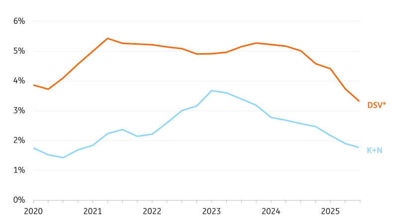 Ook bij grote logistieke spelers als DSV en Kühne & Nagel was de zwakke vraag in 2025 zichtbaar. Lagere energieprijzen en overheidssteun boden enig tegenwicht. Door hogere investeringen in infrastructuur en defensie wordt in 2026 wel verbetering verwacht. Ook de automotive sector zal naar verwachting geleidelijk herstellen.