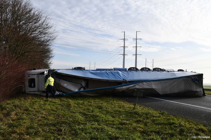 RILLAND – Op de A58 bij Rilland is maandagochtend een vrachtwagen gekanteld. Door het ongeval is de snelweg in de richting van Vlissingen afgesloten en wordt het verkeer omgeleid.