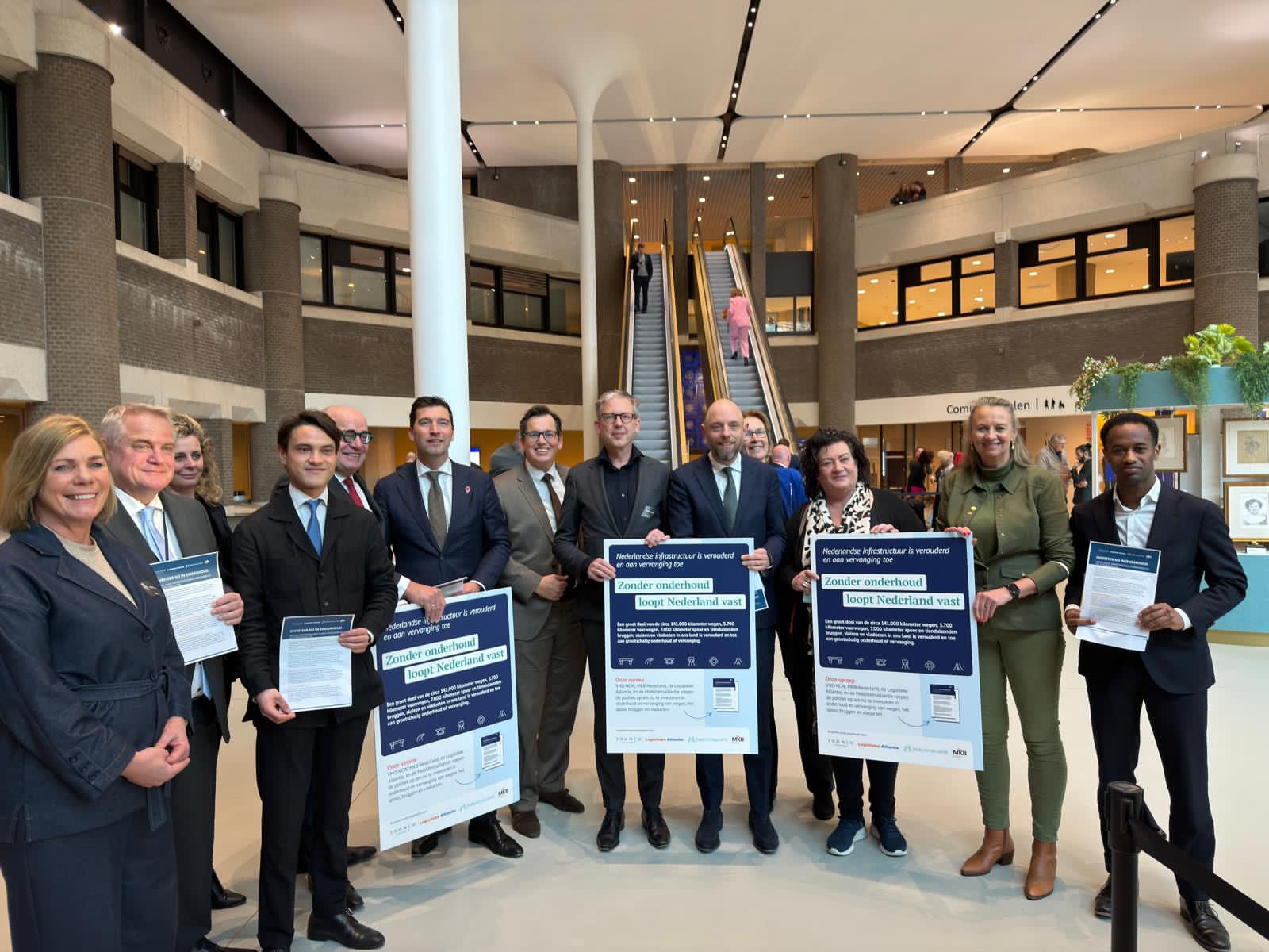 DEN HAAG – Zonder snelle en structurele extra investeringen in het onderhoud van wegen, spoor, bruggen, fietspaden, viaducten en vaarwegen dreigt Nederland economisch en qua bereikbaarheid vast te lopen. Daarvoor waarschuwen de Logistieke Alliantie, de Mobiliteitsalliantie, VNO-NCW en MKB-Nederland. De organisaties hebben vandaag een petitie overhandigd aan de Tweede Kamer, vooruitlopend op de behandeling van de IenW-begroting en het nieuwe regeerakkoord.