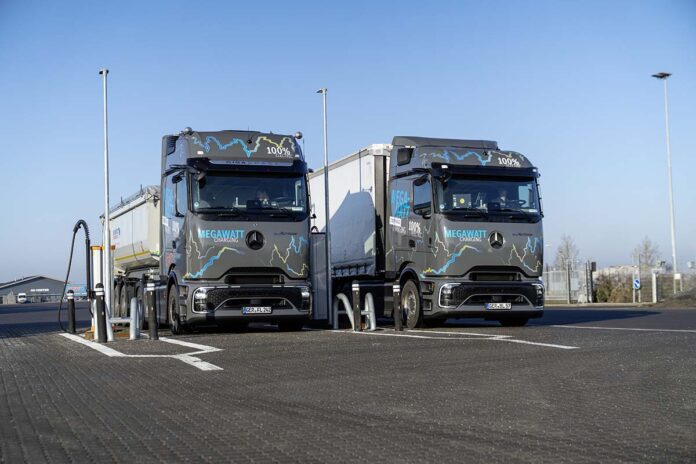 Mercedes-Benz Trucks is een uitgebreide praktijktest gestart met megawattladen (MCS) voor langeafstandstransport. Twee eActros 600-testtrucks leggen daarbij een traject af van circa 2.400 kilometer van Duitsland naar Zweden. Doel is om het Megawatt Charging System (MCS) onder realistische omstandigheden te testen, inclusief winterse omstandigheden.