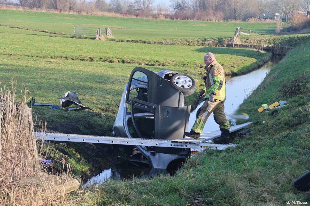 Door de klap raakte de personenauto van de weg en belandde in een naastgelegen sloot. Hulpdiensten kwamen massaal ter plaatse. Ook het Mobiel Medisch Team werd per traumahelikopter ingezet.