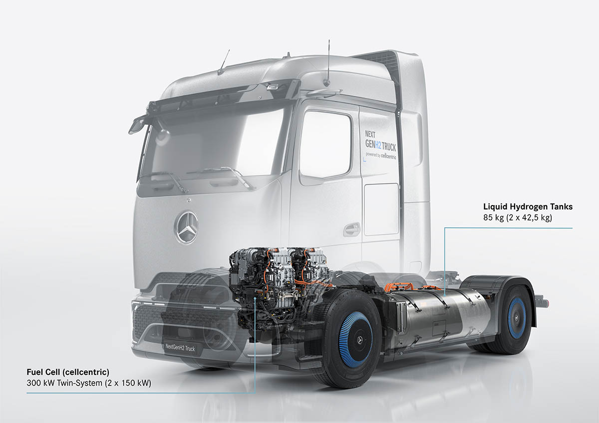 Daimler Truck benadrukt dat vloeibare waterstof logistiek minder inspanning kan vergen en dat LH2-tanks kosten- en gewichtsvoordelen bieden ten opzichte van hogedruktanks, wat gunstig is voor het laadvermogen. Eind 2023 liet Daimler Truck tijdens de #HydrogenRecordRun al zien dat een GenH2 Truck met een treingewicht van circa 40 ton met één vulling 1.047 kilometer kon rijden.