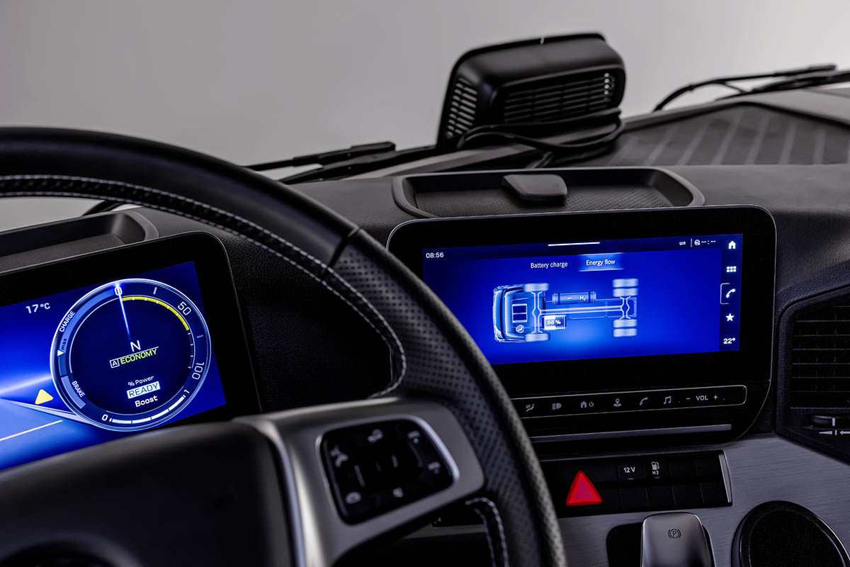 Daarnaast is er een nieuw sensorsysteem dat bij een zeer onwaarschijnlijke waterstoflekkage reageert, waardoor volgens Daimler Truck overnachten in de twee standaardbedden in de cabine mogelijk is. Ook is een nieuw zijpaneel met geïntegreerde crashelementen ontworpen voor betere bescherming van de LH2-tanks bij een ongeval, met tevens een aerodynamisch verbeterde vorm en praktische opstapplaten.