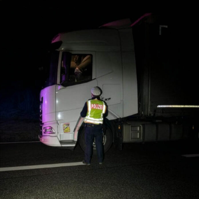 BIRKWEILER – De Duitse politie heeft woensdagochtend kort na 04.00 uur op de B10 ter hoogte van Birkweiler een vrachtwagenchauffeur gecontroleerd die het nachtelijke rijverbod had overtreden. De chauffeur was onderweg van Freiburg naar Kaiserslautern, maar kon geen geldige ontheffing tonen voor het gebruik van de B10.