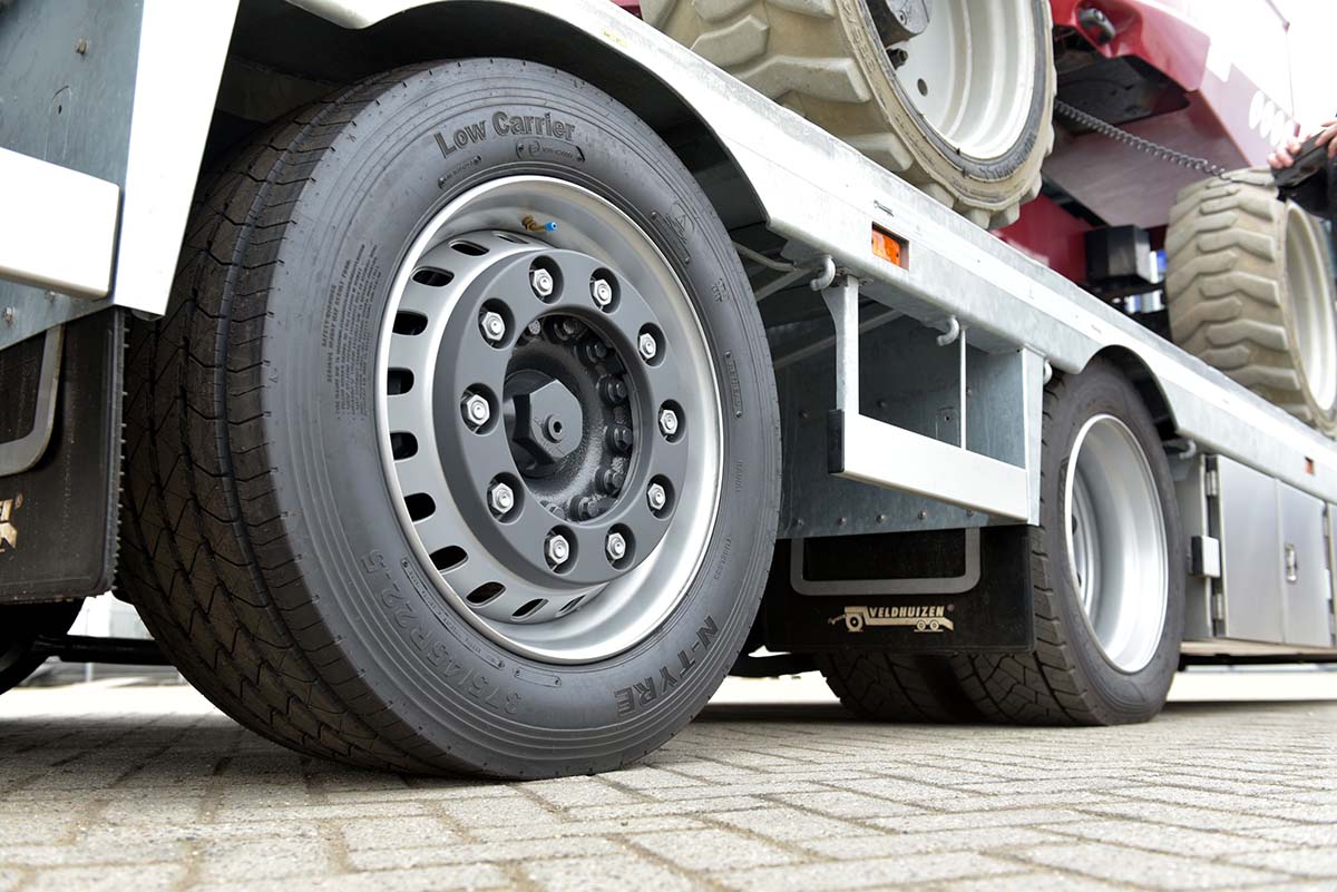 Deze banden hebben een load index van 164, goed voor vijf ton draagvermogen per band. Hierdoor kan de naloopas ondanks de lage banden toch voor 10 ton op kenteken worden ingezet, wat volgens Veldhuizen uniek is.
