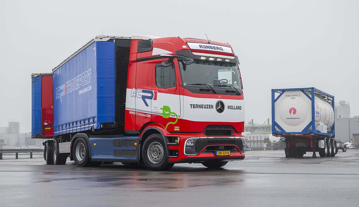 TERNEUZEN – Rijnberg Transport heeft als eerste transportbedrijf in Nederland een volledig elektrische Mercedes-Benz Trucks eActros 600 in gebruik genomen als Lange en Zware Vrachtautocombinatie (LZV). Met de inzet van deze elektrische trekker maakt het bedrijf emissievrij volumetransport mogelijk op de Nederlandse wegen.