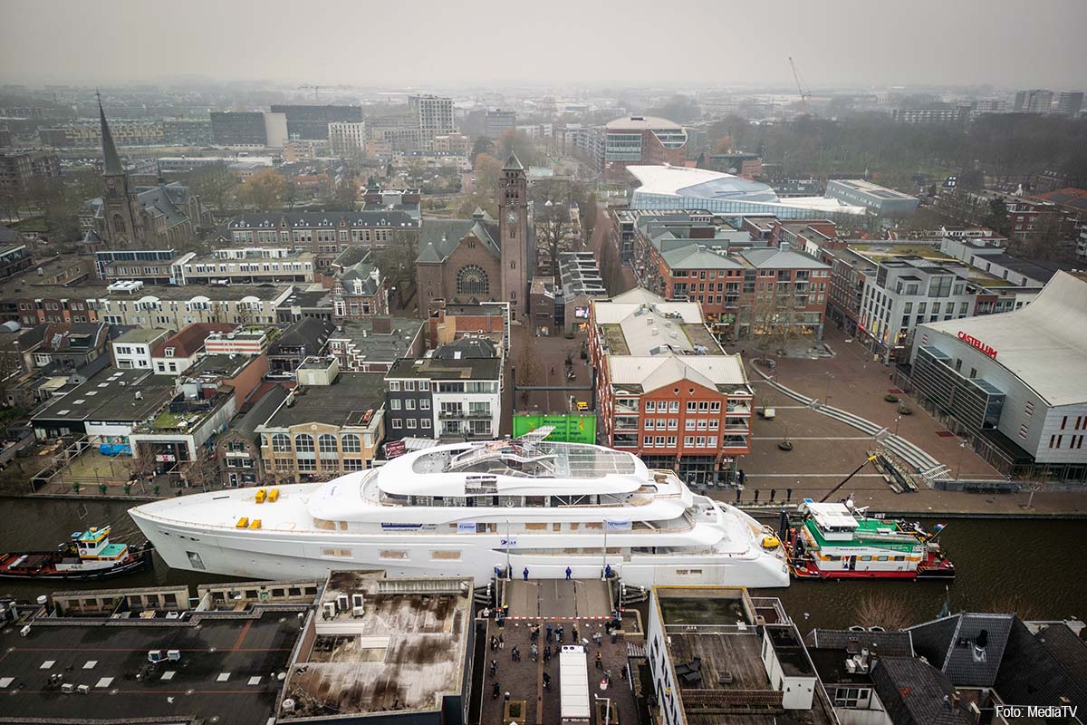 ALPHEN AAN DEN RIJN – In de regio Alphen aan den Rijn vindt woensdag het transport plaats van het casco van Feadship’s Project 829. Het casco wordt over water vervoerd naar de werf op Kaag Eiland, waar het de komende jaren zal worden afgebouwd tot een super-de-luxe megajacht.