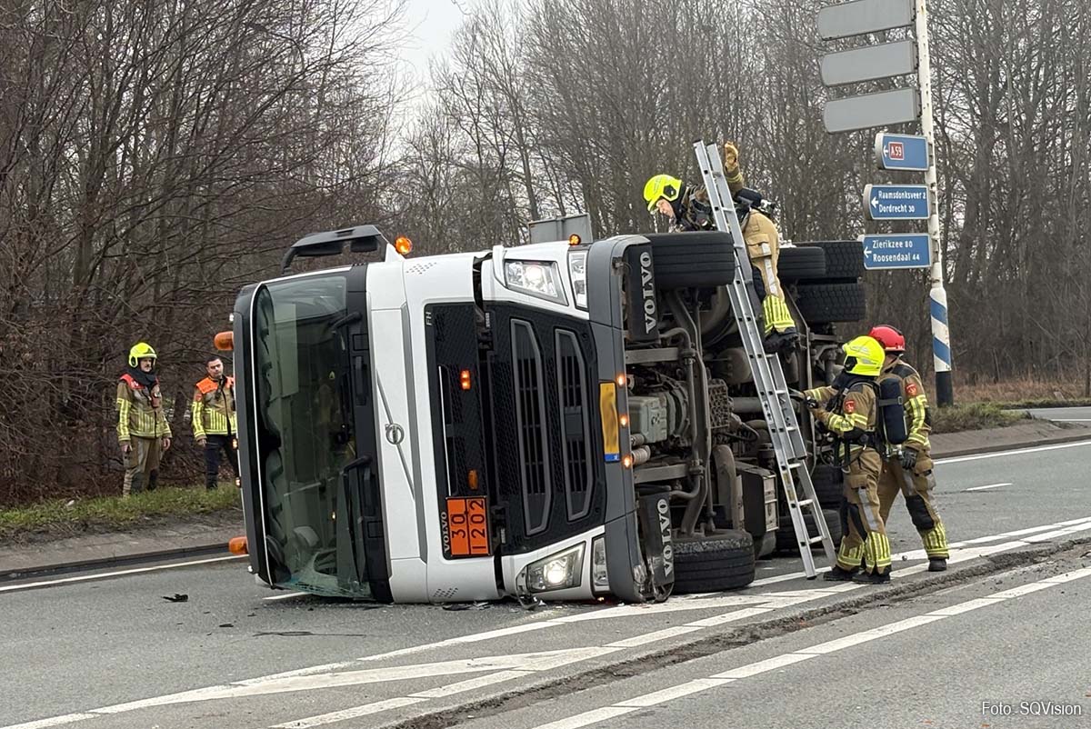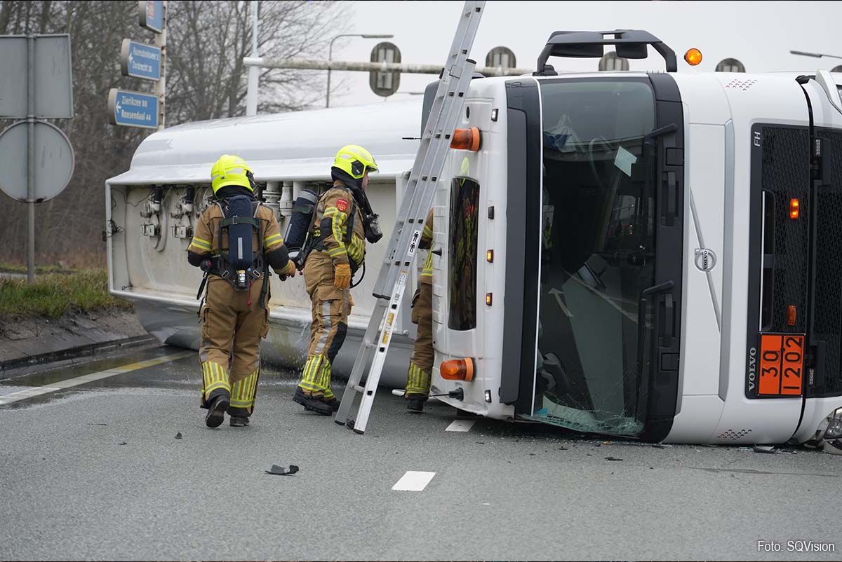 Dit keer kantelde een vrachtwagen, geladen met diesel, op de rijbaan in de richting van knooppunt Zonzeel. Dat meldt Rijkswaterstaat.