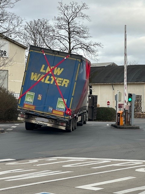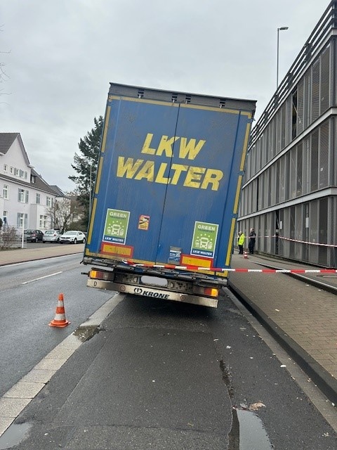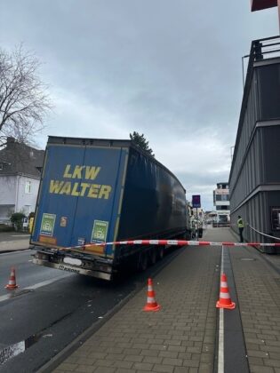 TROISDORF – In het Duitse Troisdorf is dinsdag 10 februari rond 10.50 uur een vrachtwagen in de problemen gekomen doordat een lading van ruim 26 ton onvoldoende was gezekerd. De Poststraße moest circa 45 minuten volledig worden afgesloten.