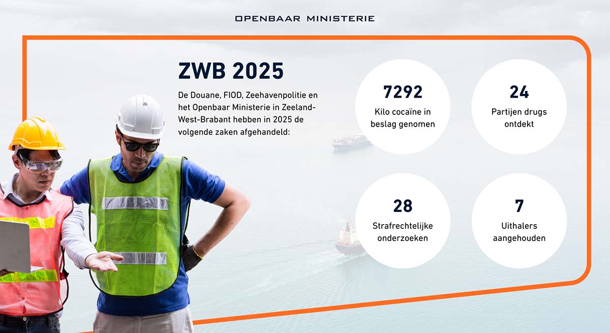 Dat waakzaamheid nodig blijft, blijkt volgens het OM ook uit de recente cijfers: in januari 2026 werd in de Rotterdamse haven al bijna 8.000 kilo cocaïne onderschept, waarvan bijna 5.000 kilo bestemd was voor een bedrijf in Moerdijk.