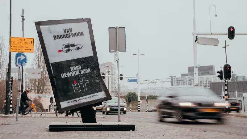 De campagne start met een opvallende fysieke activatie op verkeersknelpunten in Brabant waar relatief veel ongevallen plaatsvinden. Daar zijn bewust ‘gehavende’ reclamezuilen geplaatst, die als het ware fungeren als bewijsstuk van de gevolgen van verkeersonveilig gedrag.