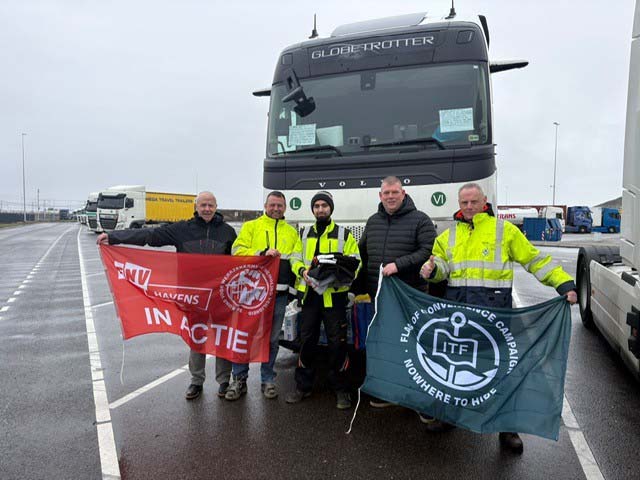 Na de melding is binnen de Sectorraad Havens van FNV Havens geld ingezameld om de chauffeur directe hulp te bieden. Vrijdag brachten Gijs Mol (ITF), Koen Keehnen (ITF) en Bas van der Meulen (gepensioneerd sectorraadslid) samen met Dennis van Looijen, werkzaam bij Hutchison Ports Delta II en lid van de Sectorraad Havens van FNV Havens, een bezoek aan de chauffeur.