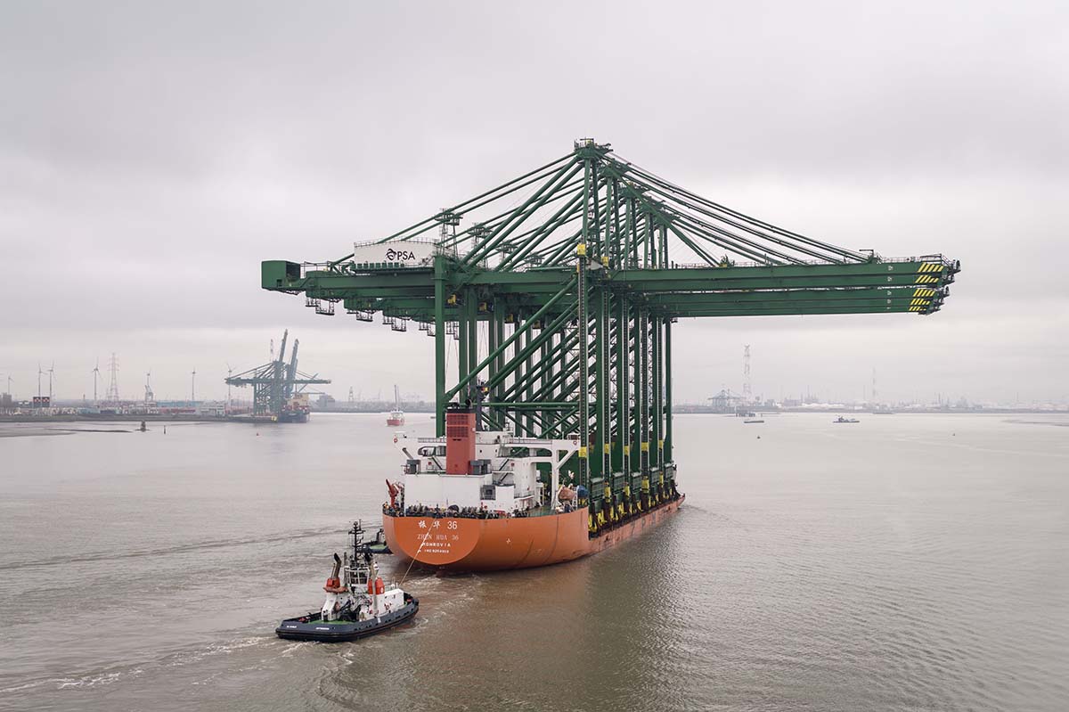 ANTWERPEN – PSA Antwerp heeft een belangrijke mijlpaal bereikt in het moderniseringsproject ‘Project Emerald’ met de aankomst van vijf nieuwe mega ship-to-shore (STS) kranen op de Europa Terminal. De kranen werden via de Schelde naar Antwerpen gebracht en zijn de grootste STS-kranen die ooit voor de haven zijn besteld.
